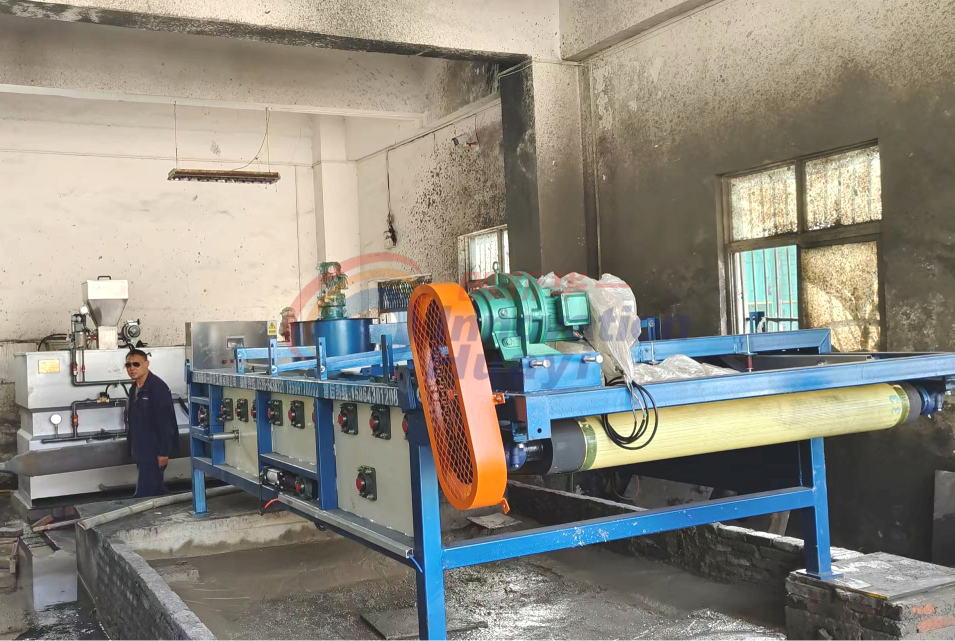 2.多级压力梯度配置:高压区采用包胶辊筒+激光雕刻凸纹,提升摩擦力,确保泥层均匀受压;气动张紧系统动态调节滤带张力(0.3–0.7MPa),适应煤泥浓度波动。