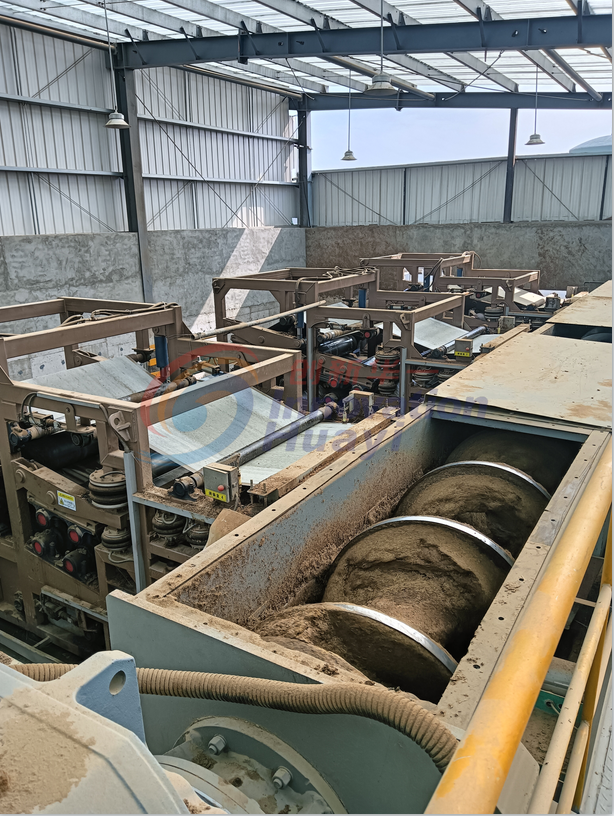 采用三台带宽1.5米的带式脱水机,单机处理量约8-10吨/小时,满足中大型牛场日处理需求,同时满足纤维完整性保留与深度脱水需求