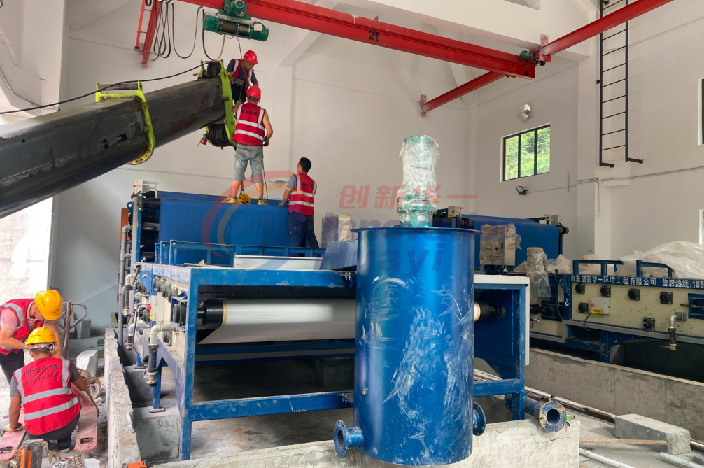 湖北省市政污泥产量大,传统脱水设备处理后的泥饼含水率高,污泥增量导致运输成本高、二次污染风险突出,亟需深度脱水技术实现减量化与资源化。本次项目选用了我们带宽2m的高压带式压滤机,满足连续运行需求。