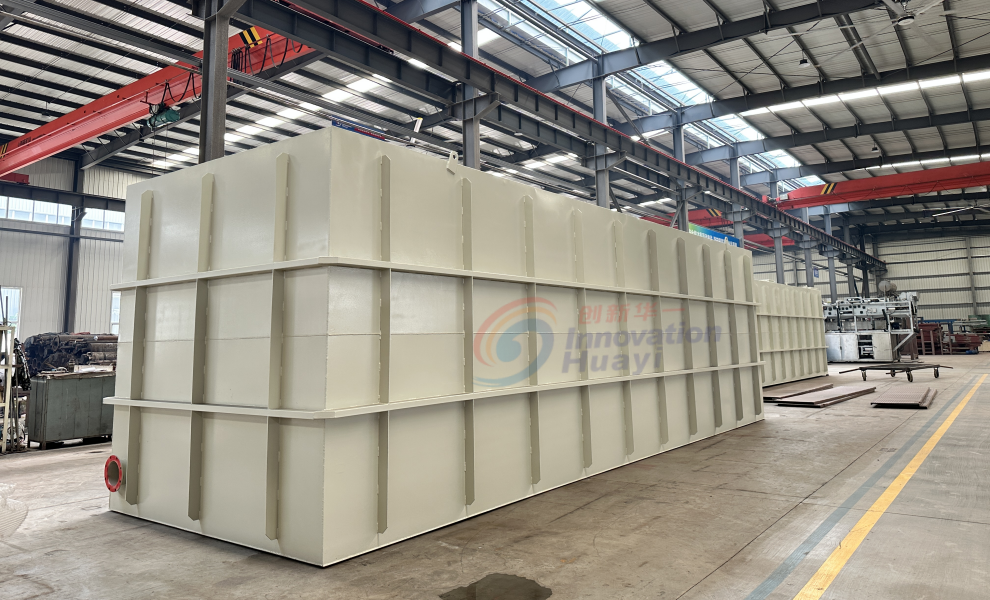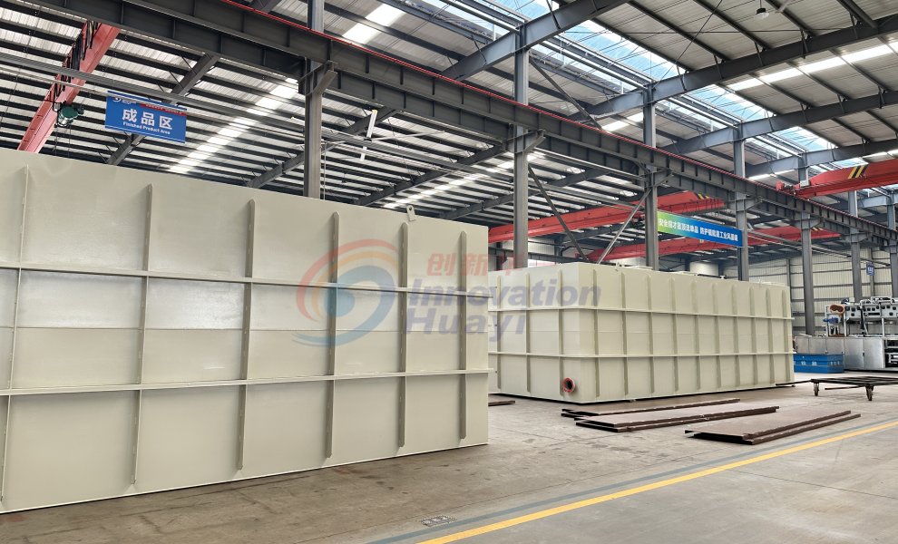 2、安装:根据安装图就位,各箱体依次就位,箱体的位置、方向不能放错,互相间距必须准确,并连接好管道。在设备内注入清水,检查各管道有无渗漏,若无则箱体四周覆土,直至设备检查孔,并平整地面。把电控箱控制线与水泵接通,电控箱与电源接通,接线时注意风机、电机的转向,必须与风机所指方向相同。