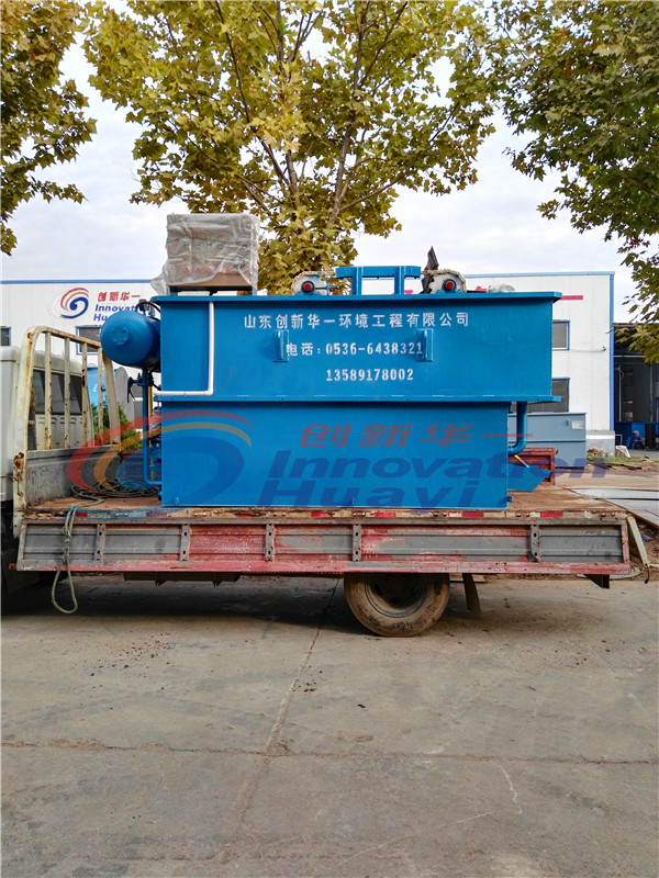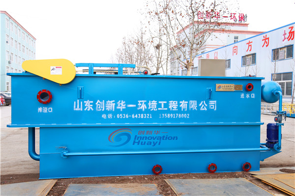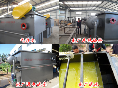 溶气气浮技术近年来广泛应用于给排水及废水处理中,它可以有效地去除废水中难以沉淀的轻浮絮体。处理能力大、效率高、占地少、使用范围广。被广泛应用于食品、石油、化工、印染、造纸、炼油、皮革、钢铁、机械加工、淀粉等污水处理。经加药反应后的污水进入气浮的混合区,与释放后的溶气水混合接触,使絮凝体粘附在细微气泡上,然后进入气浮区。絮凝体在气浮力的作用下浮向水面形成浮渣,下层的清水经集水器流至清水池后,一部分回流作溶气水使用,剩余清水通过溢流口流出,为后序生化处理减轻负担。气浮池水面上的浮渣积聚到一定厚度以后,由刮沫机刮入气浮机污泥槽后排出。