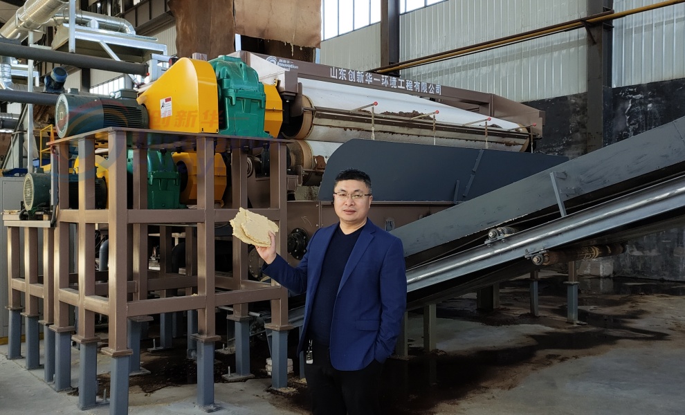 独立研发的对辊挤压及渣、水反向运行排出技术,大大降低滤饼的含水率