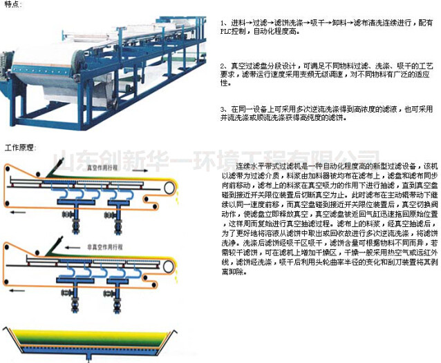 CXDU水平真空带式过滤机是一种自动化程度高的新型过滤设备,该机以过滤布或滤网为介质,使料浆水平布置于过滤介质之上,充分利用料浆重力和真空吸力实现固液分离。连续水平真空带式过滤机可适用于多种浓度条件下的物料,过滤效率高,因而被诸多工业部门优先采用。