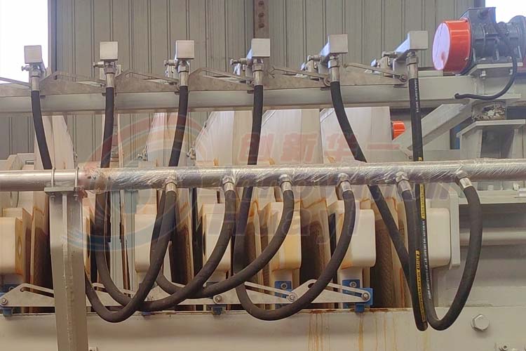4、滤板开启: 在挤压过程结束后,释放压紧油缸的压力拉开滤板。
