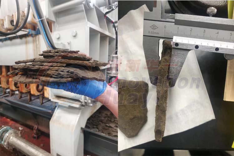 5、泥饼卸落: 滤板自动开启后,泥饼自动脱落,再通过振打器清理干净泥饼。
